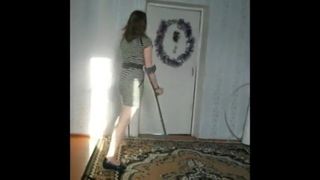 Amputată care își pune ciorapi